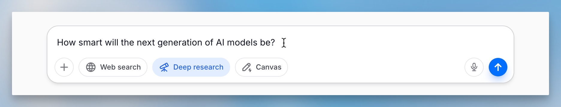 Ongeacht welk model je in de chat selecteert, gebruikt Deep Research altijd vooraf geconfigureerde modellen (specifiek geoptimaliseerd voor onderzoekstaken) om de best mogelijke kwaliteit en consistentie te waarborgen.