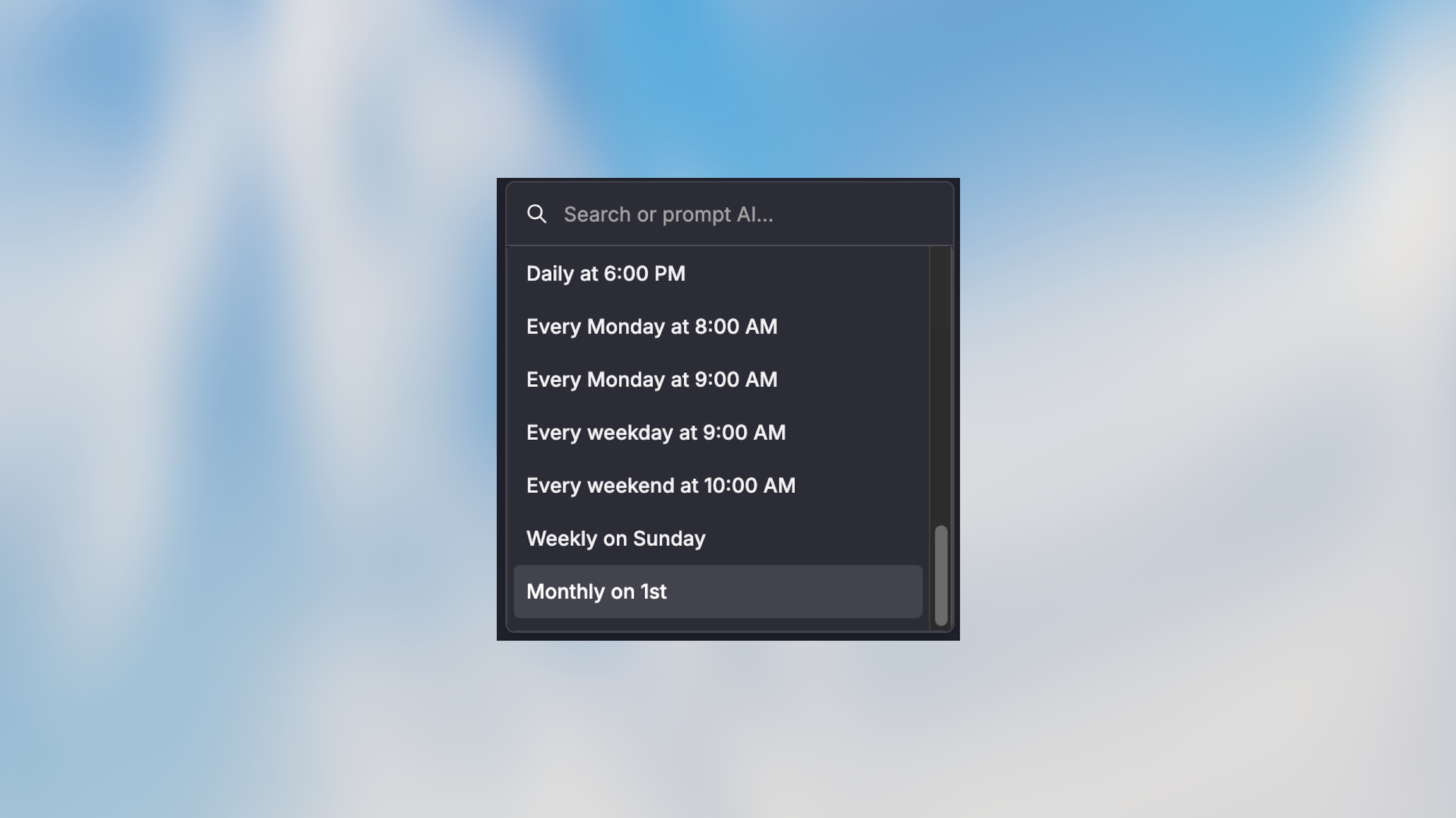 Het beste voor: Dagelijkse rapporten, periodieke gegevenssynchronisaties, terugkerende onderhoudstaken, geplande analyses en op tijd gebaseerde automatiseringen.