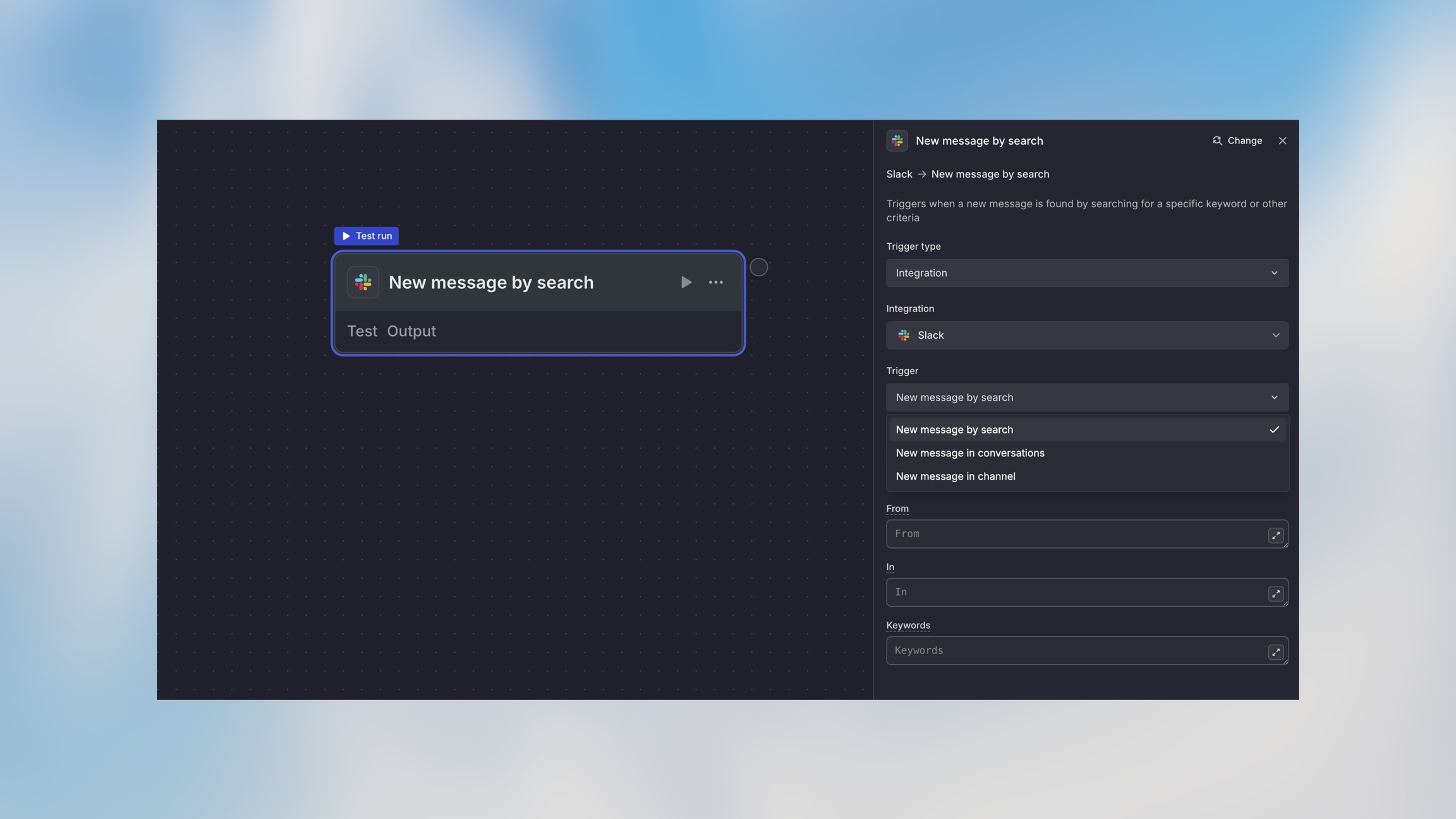 De Integration Trigger verbindt je workflows met realtime gebeurtenissen van je gekoppelde applicaties. Wanneer er iets gebeurt in Slack, Google Sheets, je CRM of een andere geïntegreerde dienst, wordt je workflow automatisch geactiveerd.